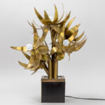 eighties/nineties’ to Maison Jansen attributed/cercle of “Hollywood Regency” style lamp with flowers in brass