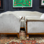 nice 3pc Art Deco salon suite in cherrywood, each with finely sculpted swan necks : a quite big settee and two armchairs