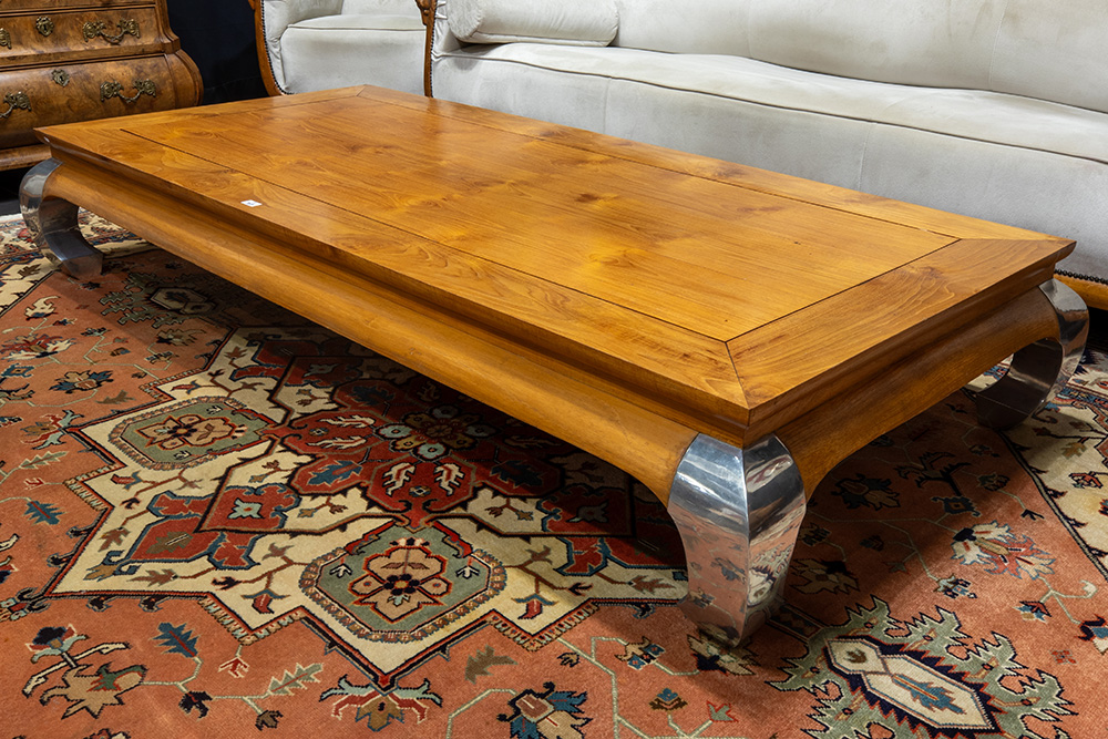 GIORGETTI nineties’ design salontafel in fruithout met gechromeerde poten – 36 x 102 x 220 cm toegeschreven aan