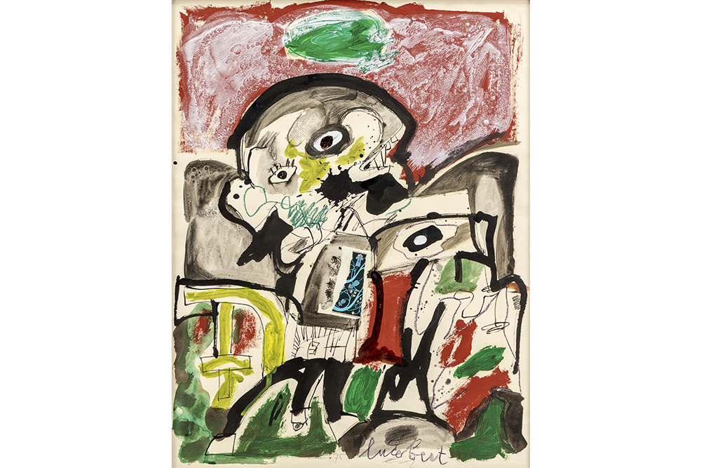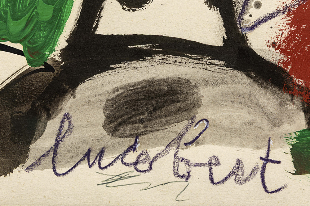 Lucebert signed and (19)75 dated mixed media painting on paper, mounted on canvas