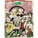 LUCEBERT (1924 – 1994) (1924 – 1994) werk in gemengde techniek op papier, gemonteerd op canvas, met een karakteristieke compositie – 64,5 x 49,5 getekend en gedateerd (19)75