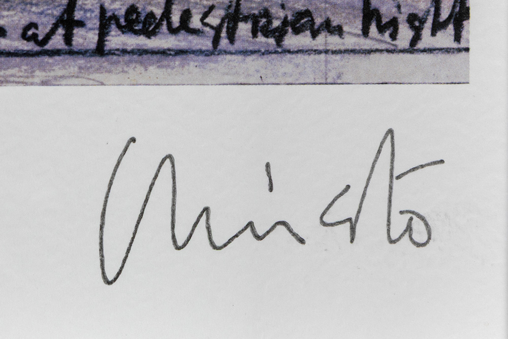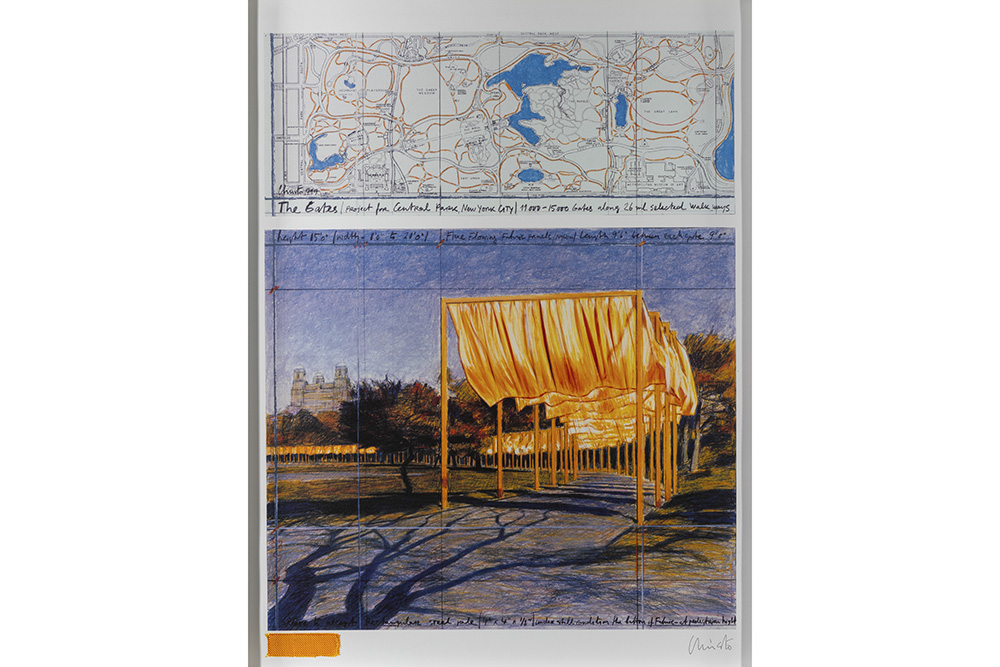 Christo signed print with an original piece of fabric of “The Gates” project