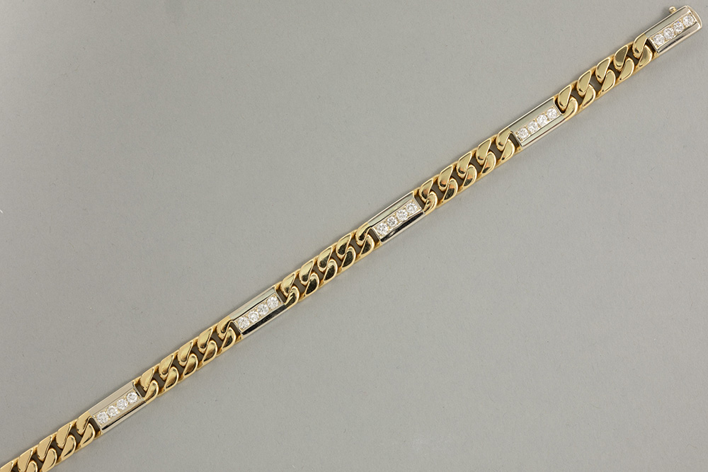 Cartier signed bracelet in yellow and white gold (18 carat) with ca 1 carat of very high quality brilliant cut diamonds – numbered
