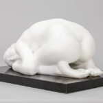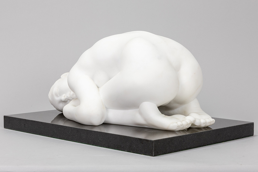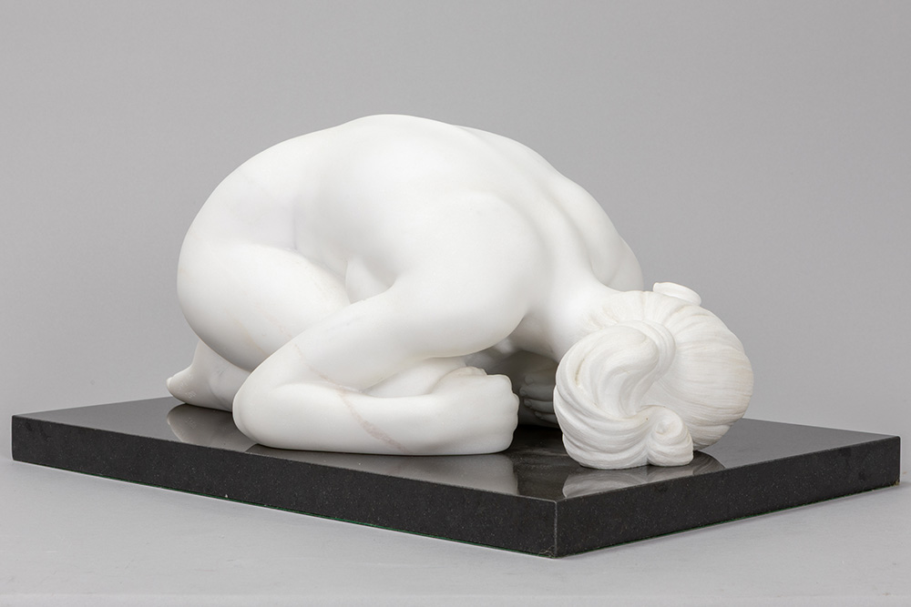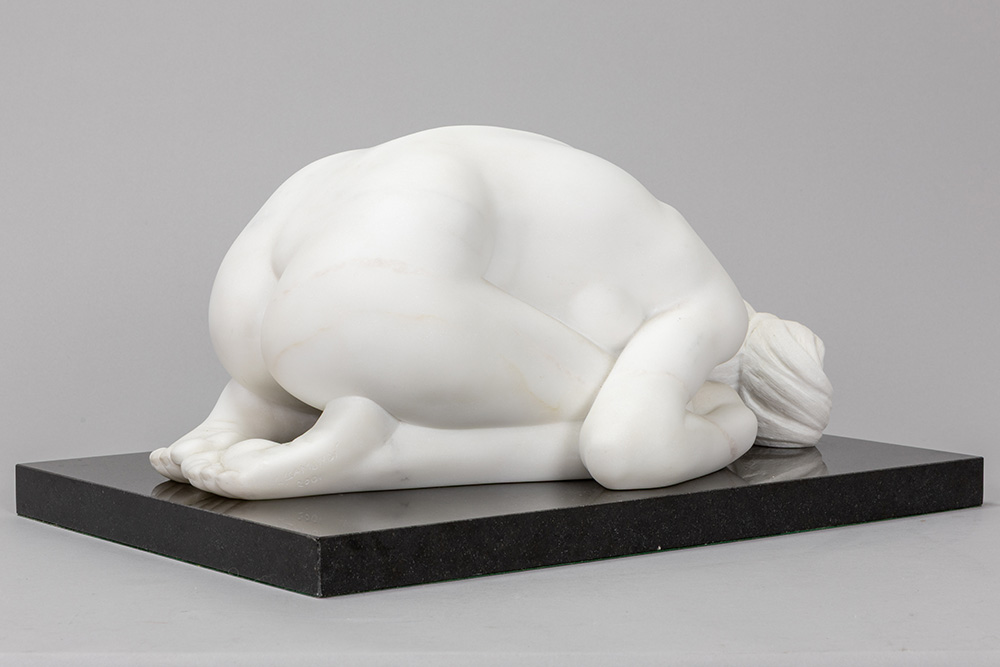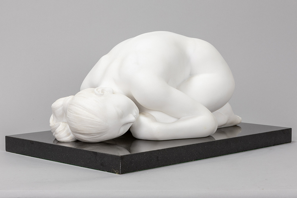 GAMUNDI MARIA (° 1952) (IT) sculptuur in statuario-Cararamarmer met de voorstelling van een naakte vrouw, getiteld “Sasso” – op een basis in zwarte graniet – ca 22 x 46 x 31 getekend en gedateerd 2001