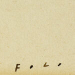 FOLON JEAN-MICHEL (1934 – 2005) tekening in inkt met een typische voorstelling, gemaakt op de verso van een Italiaanse menukaart uit 1972 – 15 x 26 getekend