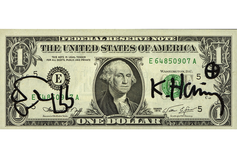 Keith Haring signed ‘Radiant Baby’ drawing in felt-tip pen on a one dollar banknote
