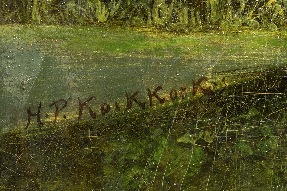 KOEKKOEK HENDRIK PIETER (1843 – ca 1890) olieverfschilderij op doek : “Geanimeerd landschap” – 37 x 51 getekend