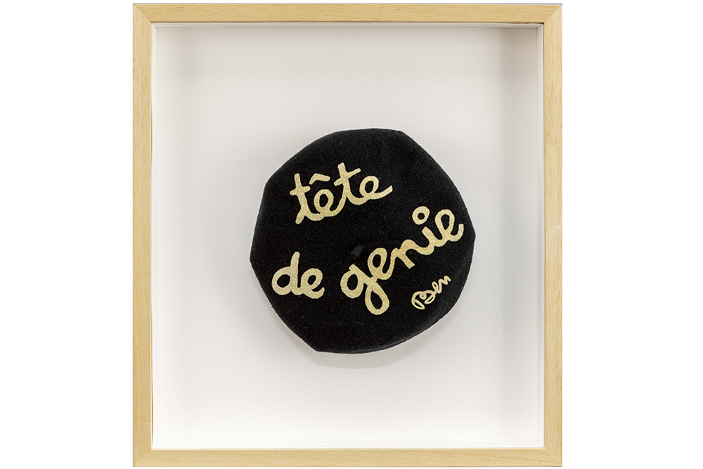 framed Ben Vautier ‘béret’ with a typical text “Tête de génie”