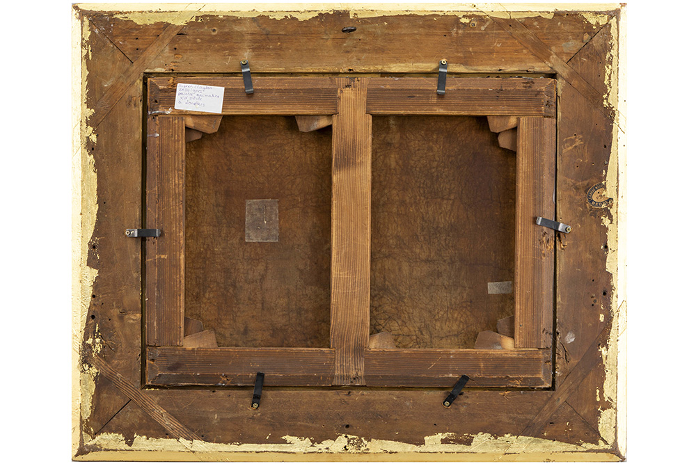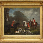 DESVIGNES HUBERT CLAYTON (1831 – 1863) (UK) olieverfschilderij op doek met een jachttafereel met ruiters en honden – 40 x 52,5 getekend en met op verso een oud label
