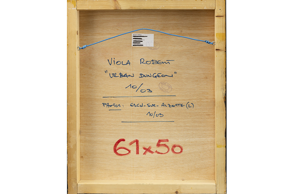 VIOLA ROBERT (° 1966) triptiek van drie olieverfschilderijen op paneel getiteld “Urban Dungeon Bruxelles” – telkens : 61 x 50 op verso getekend en met certificaat van “Absolute Art Gallery” dd 2007