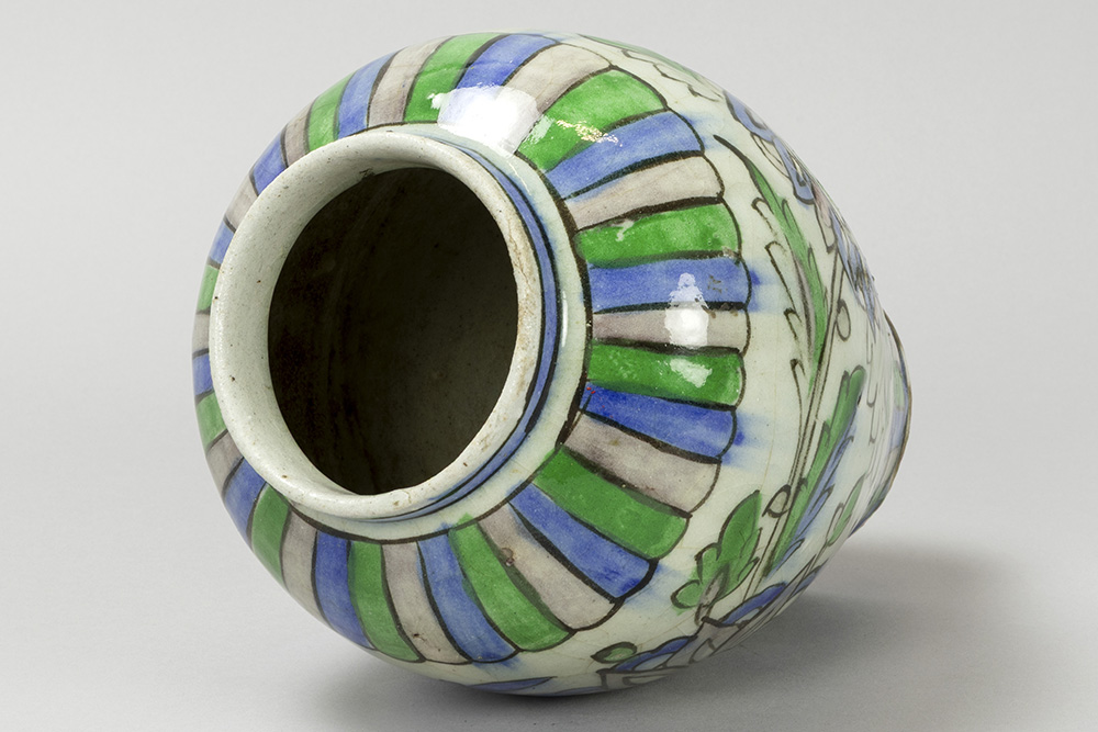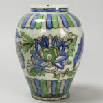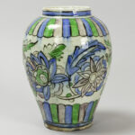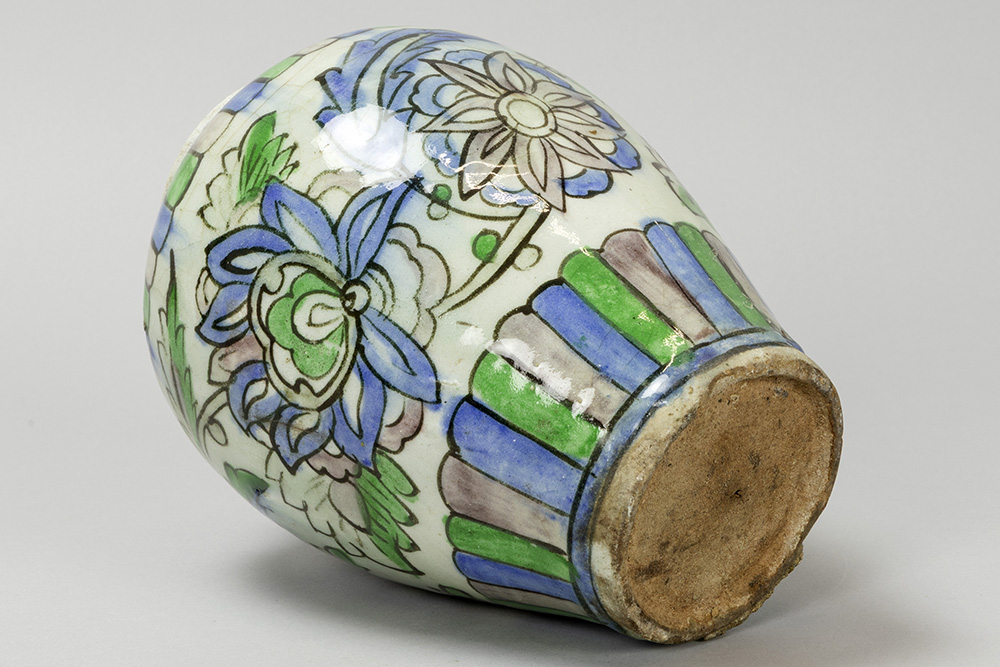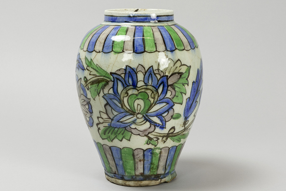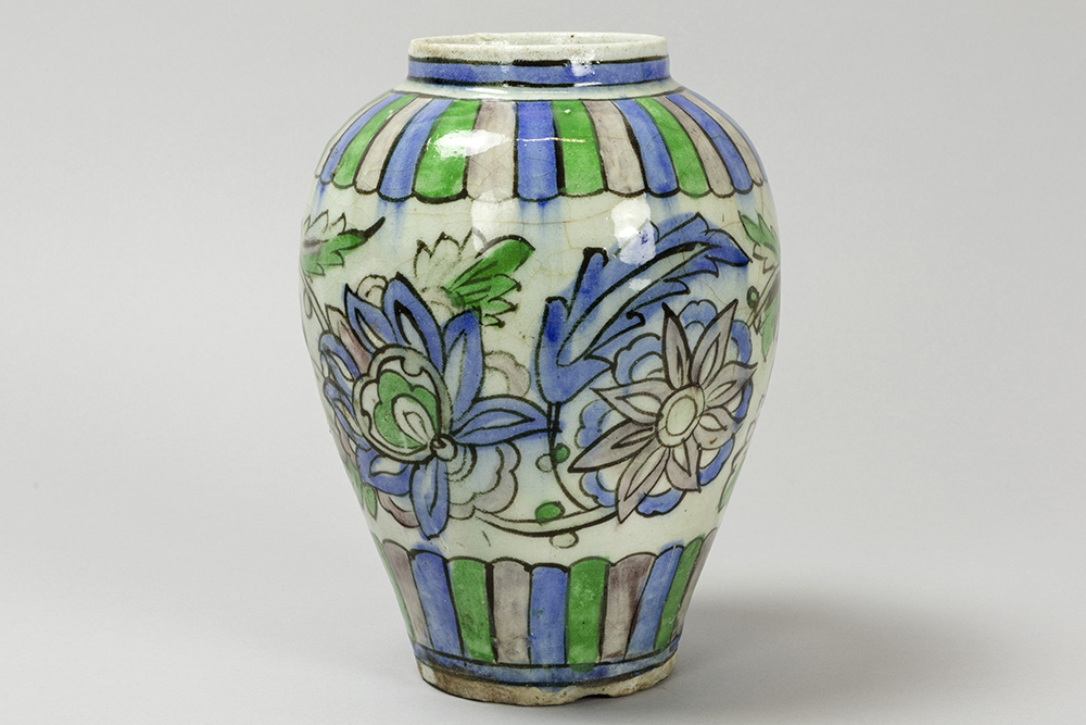 Antieke (?) Perzische vaas in faience met een blauw en groen bloemdecor – hoogte : 22 cm