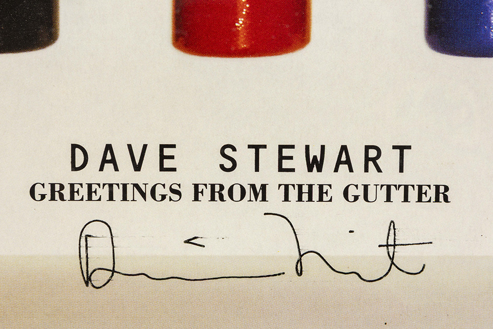 HIRST DAMIEN (° 1965) handgesigneerde elpeecover voor de “Greetings from the Gutter” plaat van David Steward (1994) met originele vinyl – in plexi case (36 x 56)