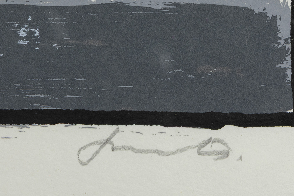 BERVOETS FRED (° 1942) kleurlitho n° 30/40 : “Compositie” – 84 x 70 getekend en met op verso een label van “De Zwarte Panter”