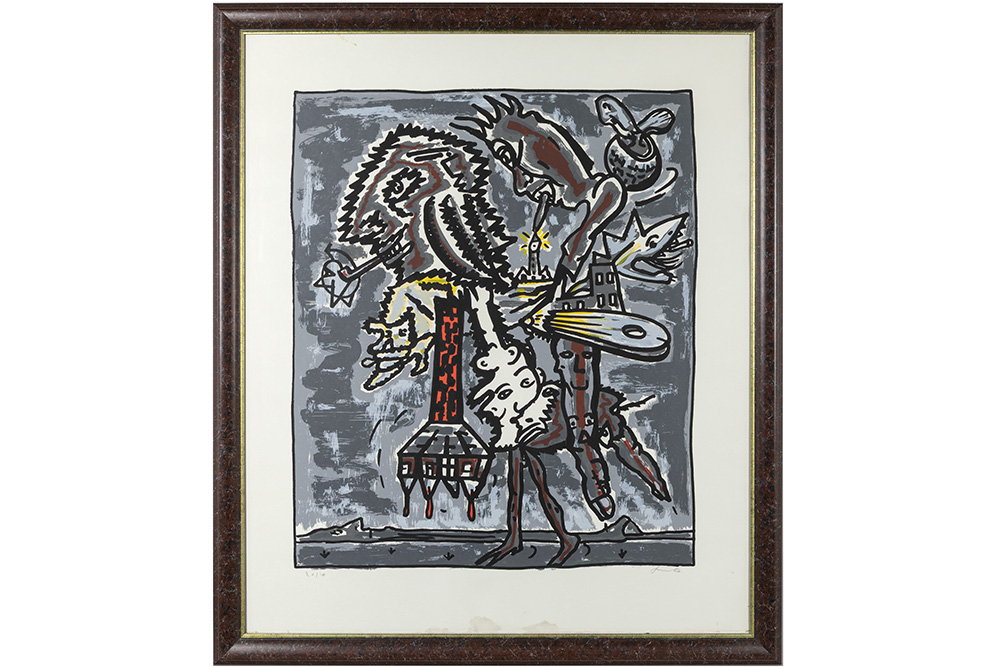 20th Cent. Belgian lithograph printed in colors – signed Fred Bervoets and with on the back a label of “De Zwarte Panter” gallery