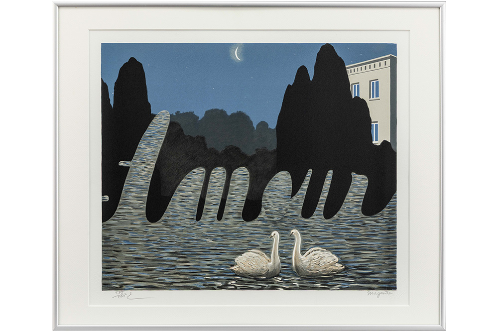 René Magritte numbered lithograph printed in colors after the work “L’art de la conversation” from 1950 – with stamp by the Succession Magritte and paraph from Charly Herscovici