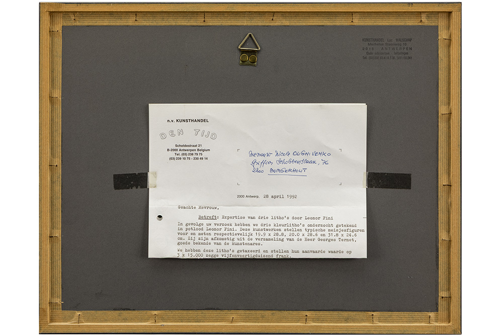 FINI LEONOR (1907 – 1996) twee kleurlitho’s telkens met een typische compositie met vrouw – 19 x 28 getekend