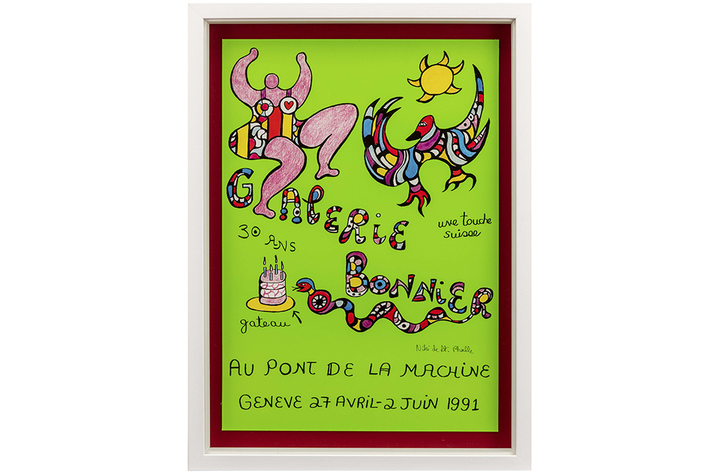 Niki de Saint Phalle hand signed poster of an exhibition at Galerie Bonnier Geneve dd 1991