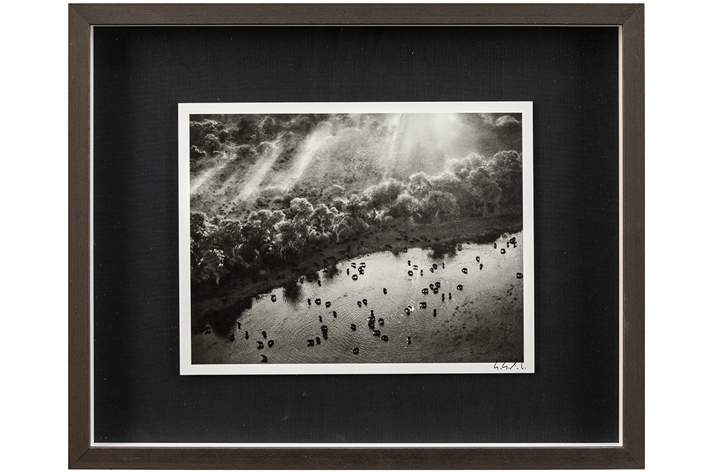 SALGADO SEBASTIAO (1944 – 2025) set van een gesigneerde print (26 x 33) met een luchtfoto met runderen en een luxe uitgave van het boek “Genesis”