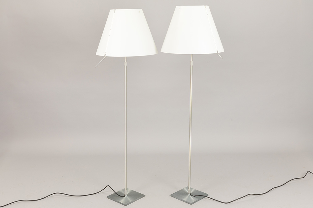 two Paolo Rizatto “Luce plan Constanza D13” design floor lamps, of which one is dimmable – marked