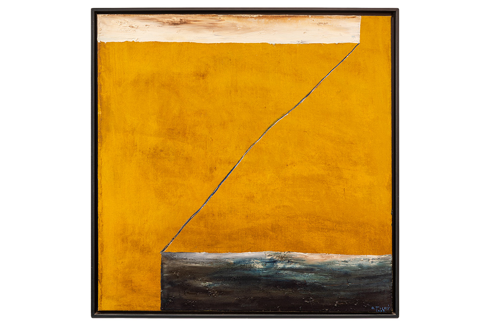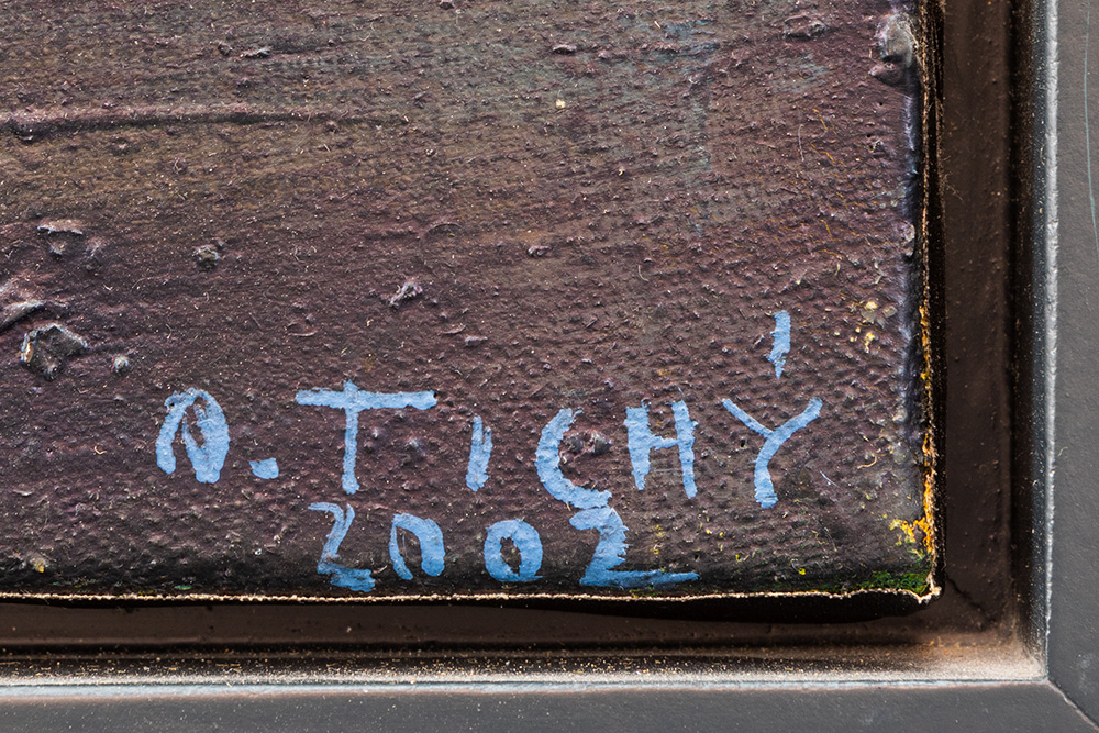 TICHY OLDRICH (° 1959) olieverfschilderij op doek : “Abstracte compositie” – 80 x 80 getekend