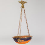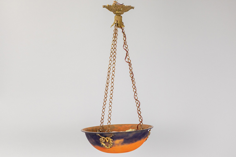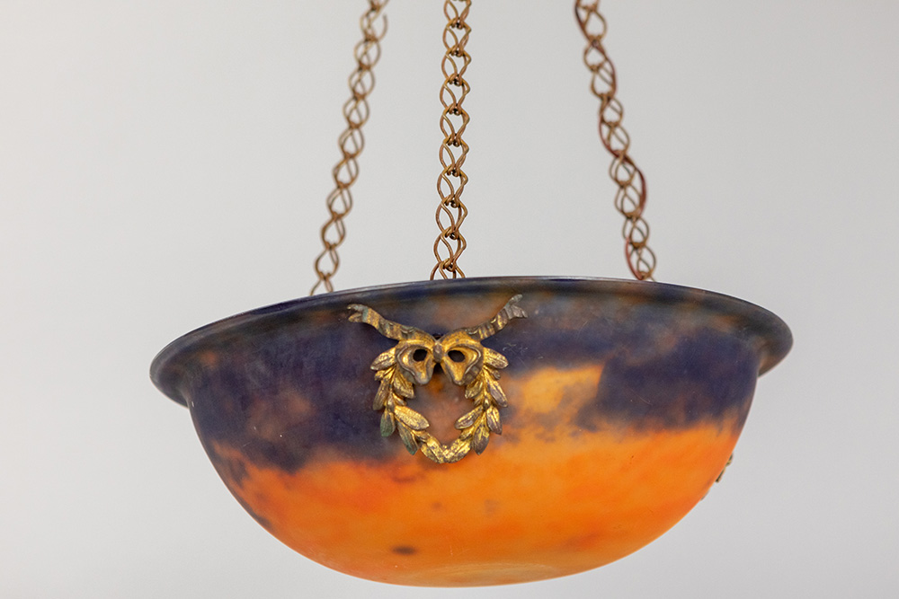 Daum Nancy signed chandelier with a pâte de verre bowl and mountings in gilded bronze