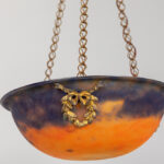 DAUM NANCY lustercoupe in gemarmerde glaspasta met een montuur in gedoreerde brons – diameter : 34 cm – ca 1910/20 getekend