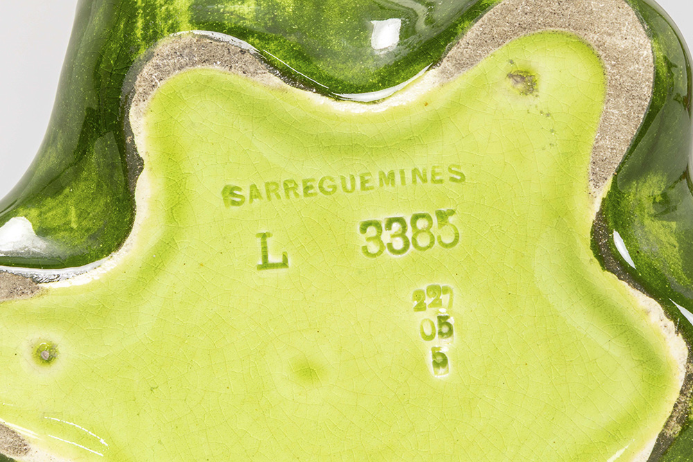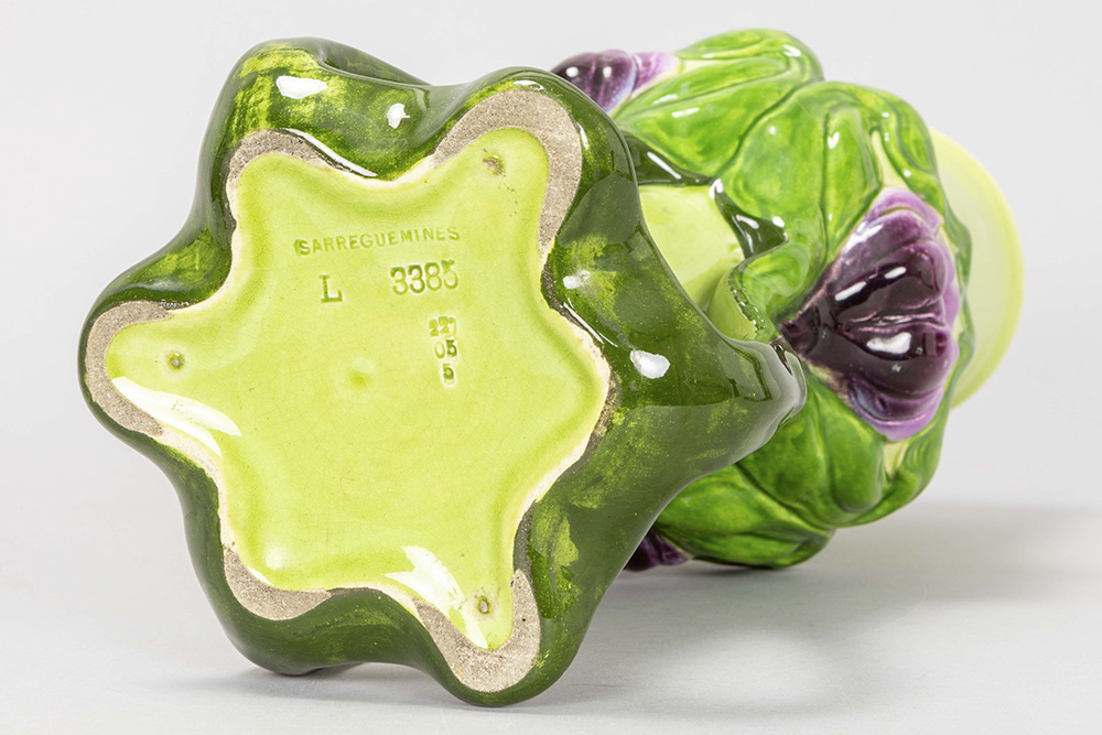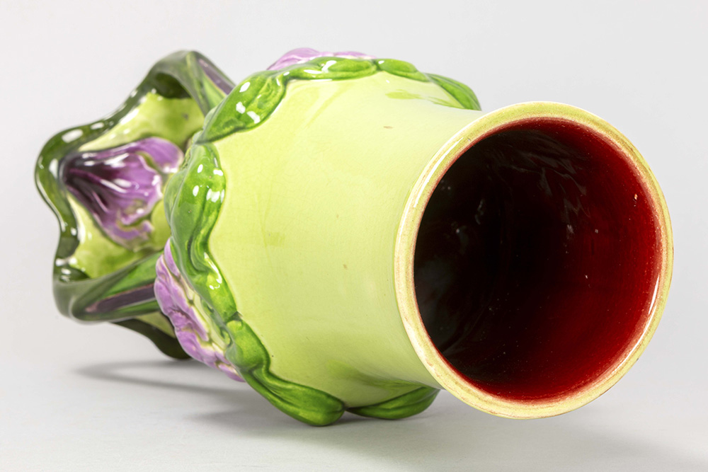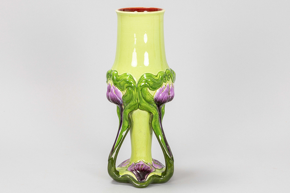 French Art Nouveau vase in Sarréguémines marked ceramic with typical floral whiplash ornamentation