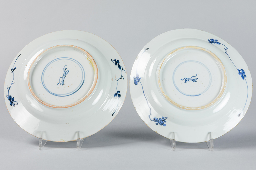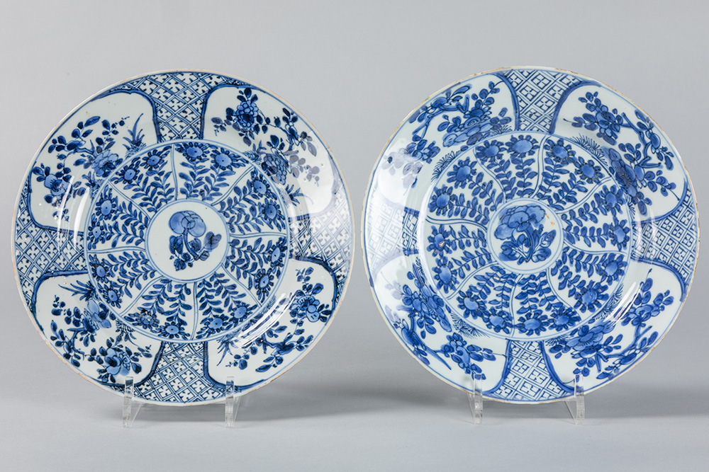 pair of 17th/18th Cent. Chinese KangXi period plates in porcelain with a floral blue-white decor