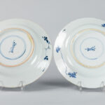 Paar zeventiende/achttiende eeuwse Chinese KangXi – borden in porselein met een floraal blauwwit decor – diameter : 22,5 cm