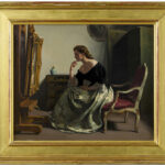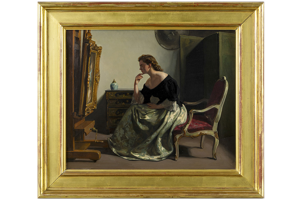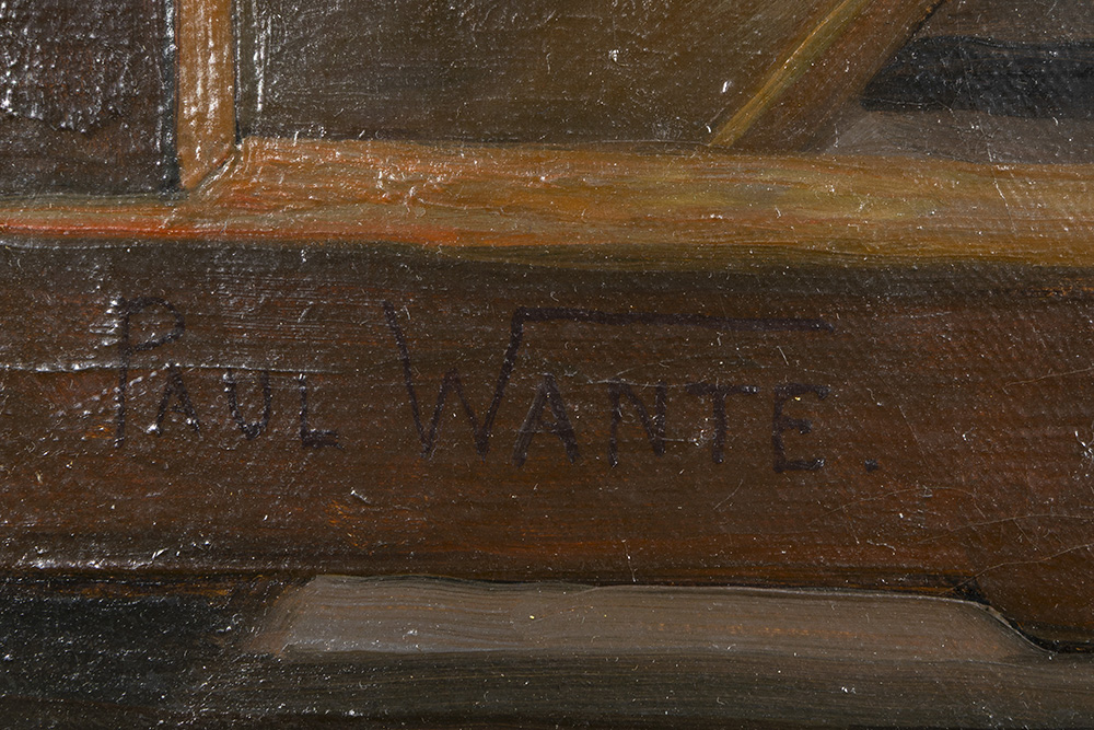 WANTE PAUL (1905 – 1981) olieverfschilderij op doek : “Vrouw kijkend naar haar portret” – 54 x 64 getekend
