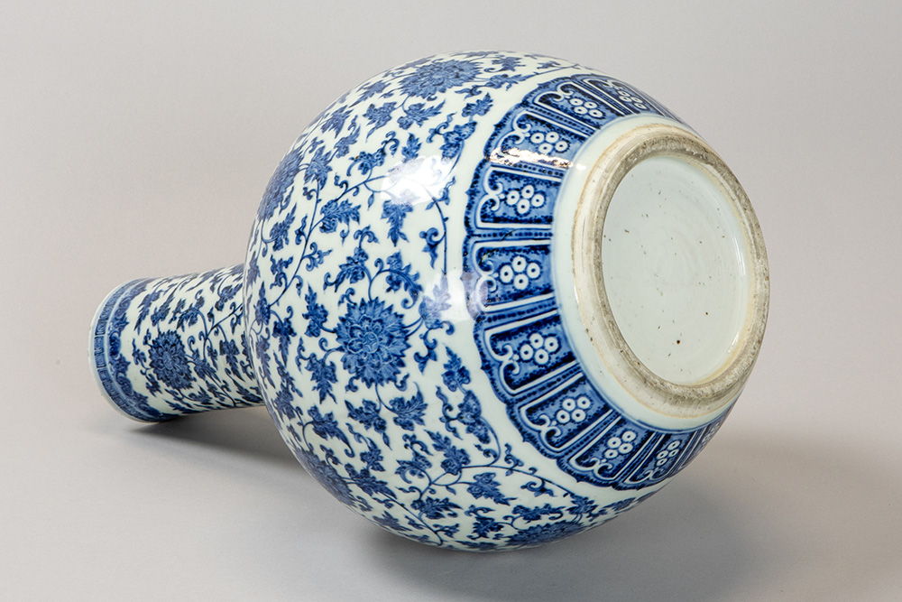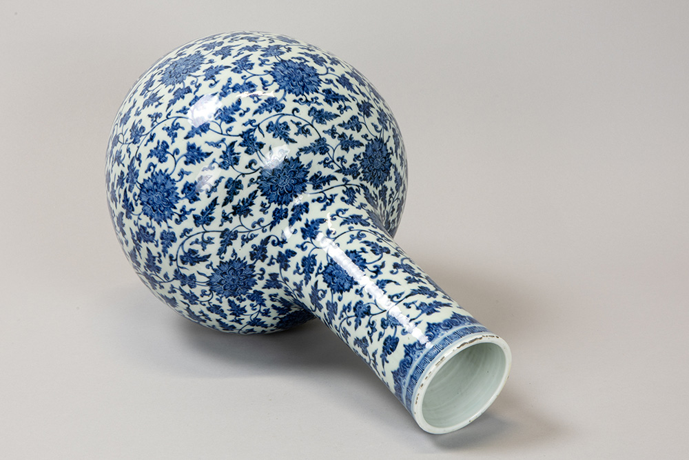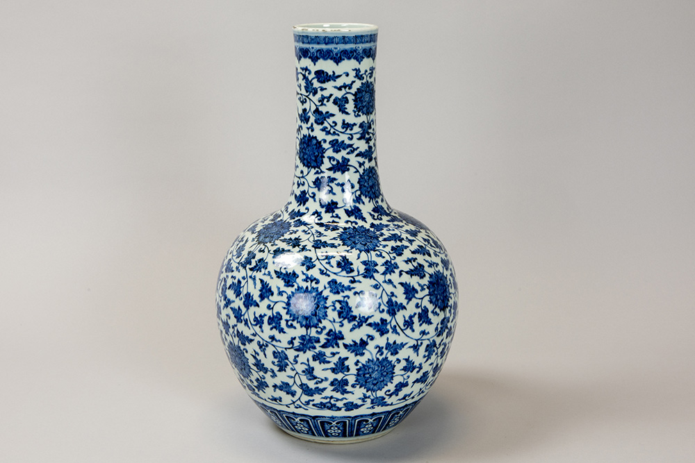 Chinese buikvaas in porselein met blauwwit bloemendecor – hoogte : 48 cm