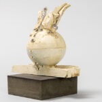 illegibly signed 20th Cent. ceramic sculpture on a ebonised base