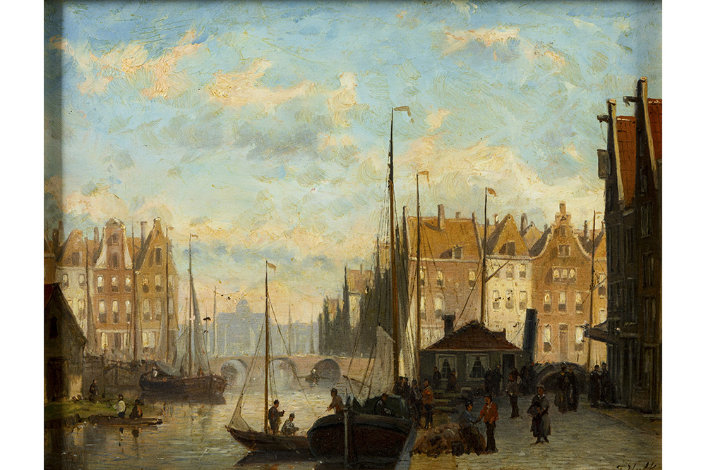 John Frederick Hulk signed / attributed oil on panel with a view of Amsterdam