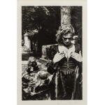 NEWTON HELMUT (1920 – 2004) handgesigneerde fotolitho “Père Lachaise – Tomb of Talma” (40 x 26,5),samen verkocht met een kunstboek en een plexi steun