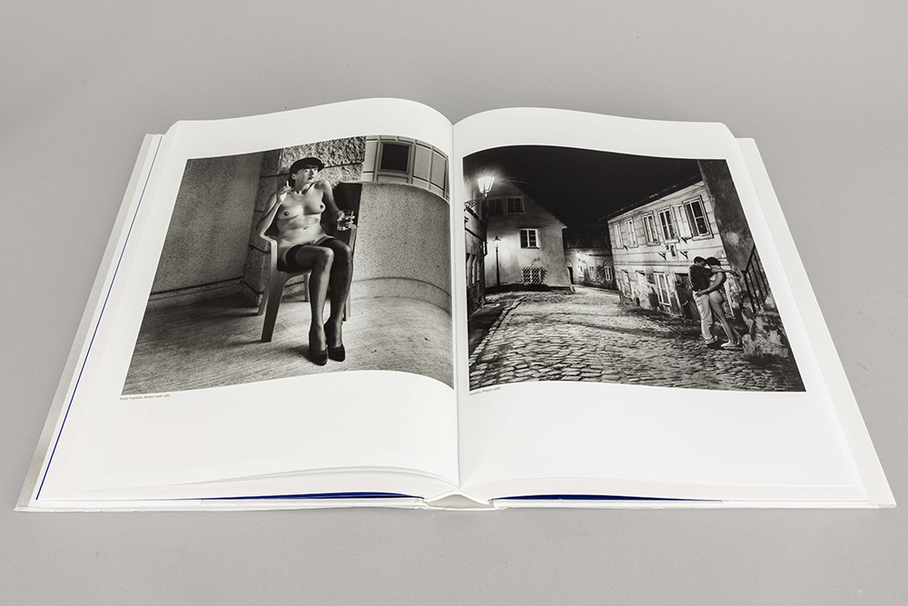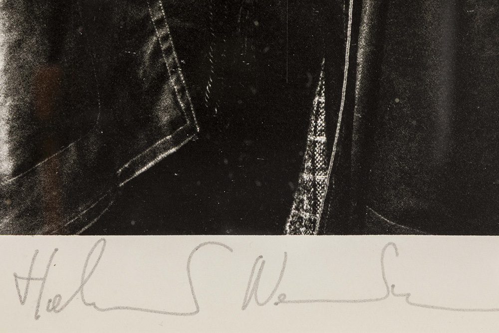 set of a Helmut Newton handsigned photolitho “Père Lachaise – Tomb of Talma” and an art book with its plexi stand