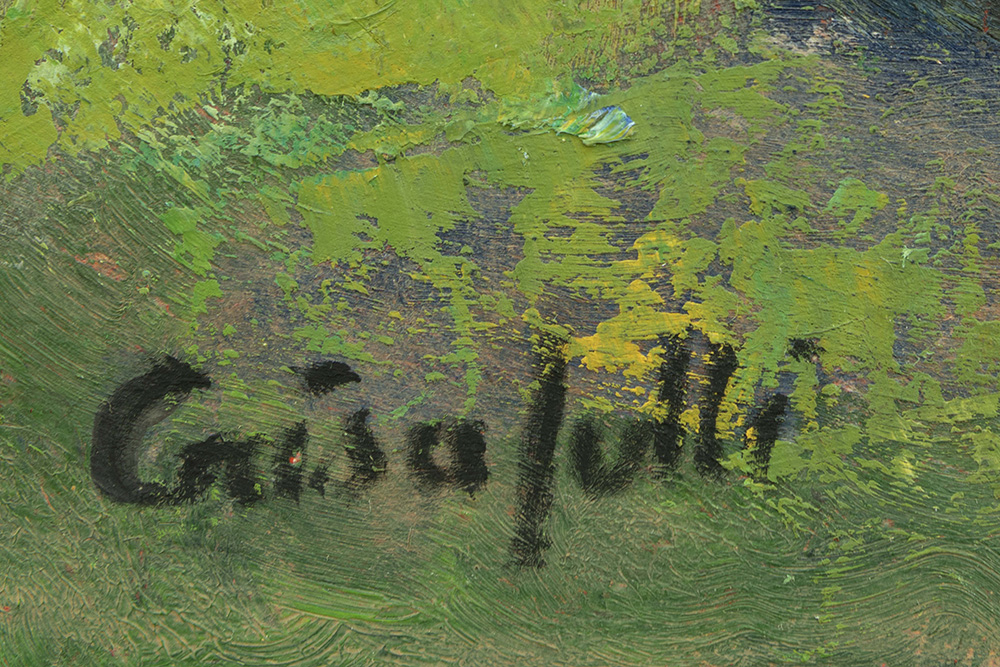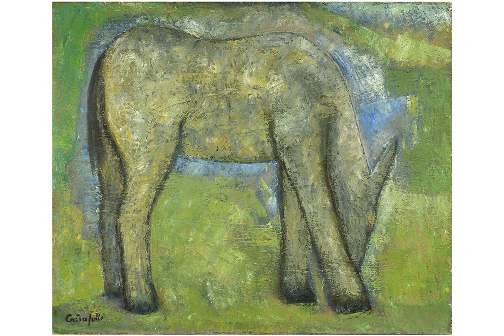 CRISAFULLI JÉRÔME (20STE EEUW) olieverfschilderij op doek : “Grazende ezel” – 38 x 46 getekend