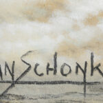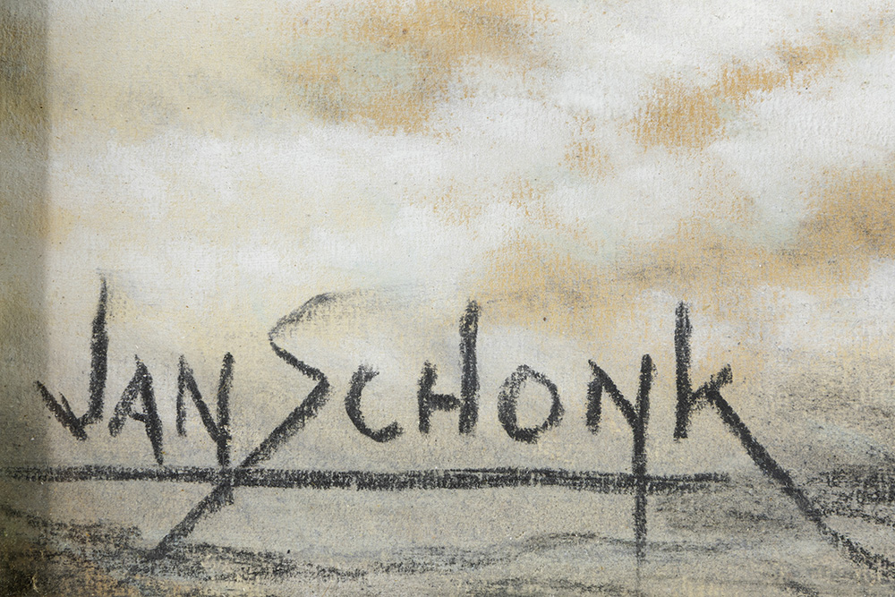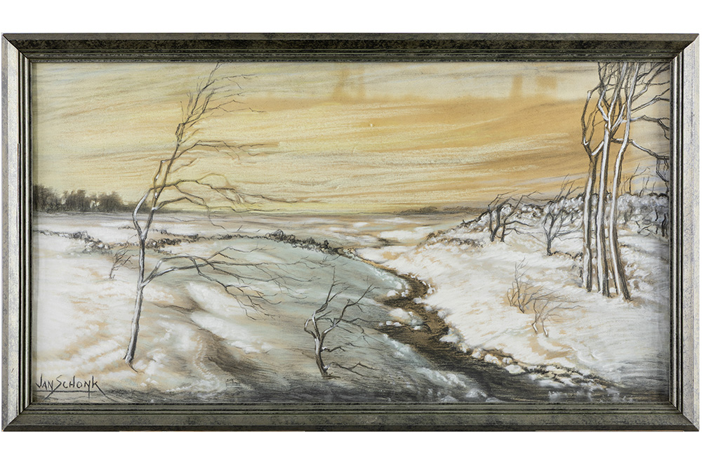 SCHONCK JAN (1889 – 1976) werk in gemengde techniek : “Winterlandschap” – 49 x 91 getekend