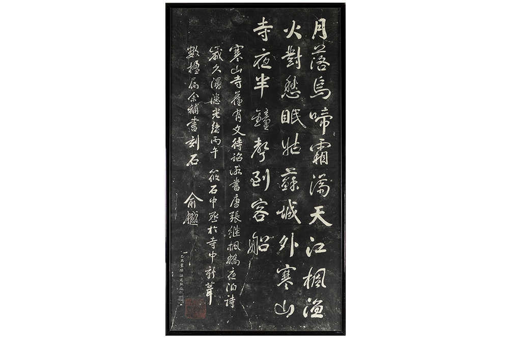 large Chinese painting with the poem “Night Mooring at Fengqiao” by Zhang Ji