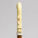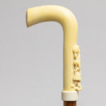 European cane from around 1900 with a total height of 91 cm and ‘L’-shaped grip in ivory with a figure in a monk’s cowl