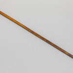 Europese wandelstok van ca 1900 met een totale hoogte van 91 cm met een ‘L’-vormige greep in ivoor versierd met een fijn gesneden wolf in monnikspij