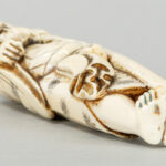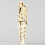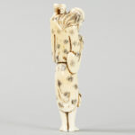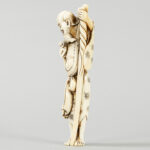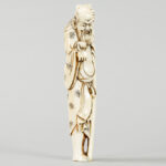 Grote antieke Japanse netsuké uit de Meiji-periode in ivoor : “Wijze met staf en pad” – hoogte : 15 cm – gewicht : 127 gram
