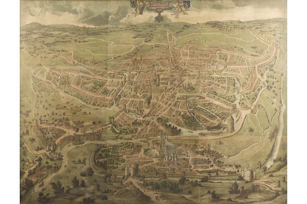 antique groundplan of Medieval Ghent, printed (lithographs) on several sheets
