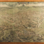Antieke plattegrond met de voorstelling van het Middeleeuwse Gent, gerealiseerd op verschillende gelithografeerde bladen – 133 x 173