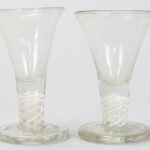 Twee achttiende eeuwse Nederlandse zgn oorlamglazen in glas met typische voet – hoogte : 12 cm