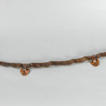 Gordel uit de Himalaya-gebieden, allicht van Nepal, in leder versierd met Boeddhistische motieven in zilver – lengte : 100 cm