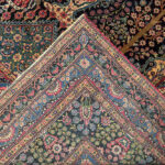 antique well preserved Persian Kerman Raver in wool with a refined design with mihrab and tree of life