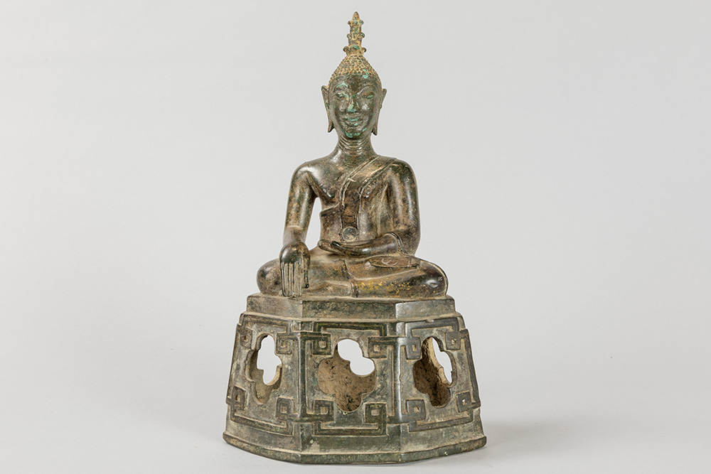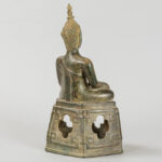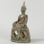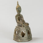13th Cent. “Sitting Buddha” sculpture in bronze with silver inlay from Laos (Luang Prabang)