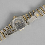 completely original Omega marked quartz “Constellation” ladies’ wristwatch in steel and gold with a mother of pearl face – with some spare links