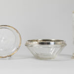 WOLFERS lot (3) van een schaal, vaas en kom in kleurloos kristal en gemerkt massief zilver getekend