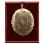 presumable early 19th Cent. English, oval medaillon in gold with a miniature ladies’ portrait, surrounded by pearls